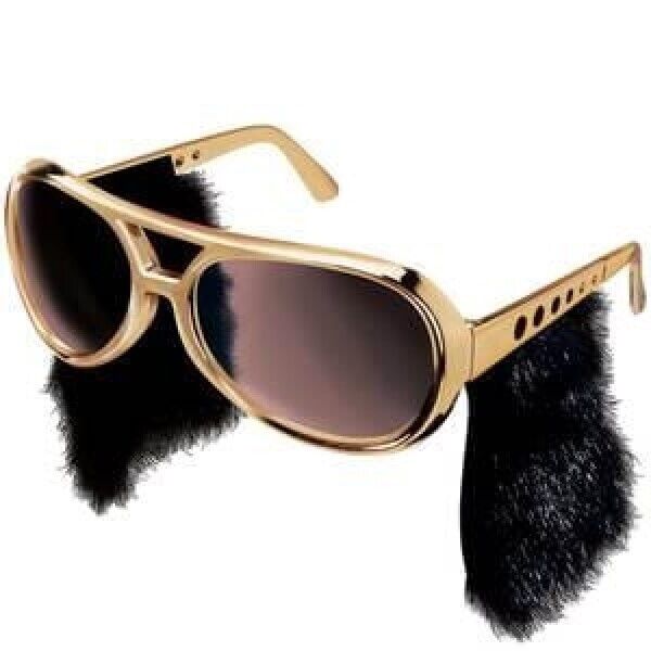 Elvis Presley Style Gold Sunglasses with Sideburns