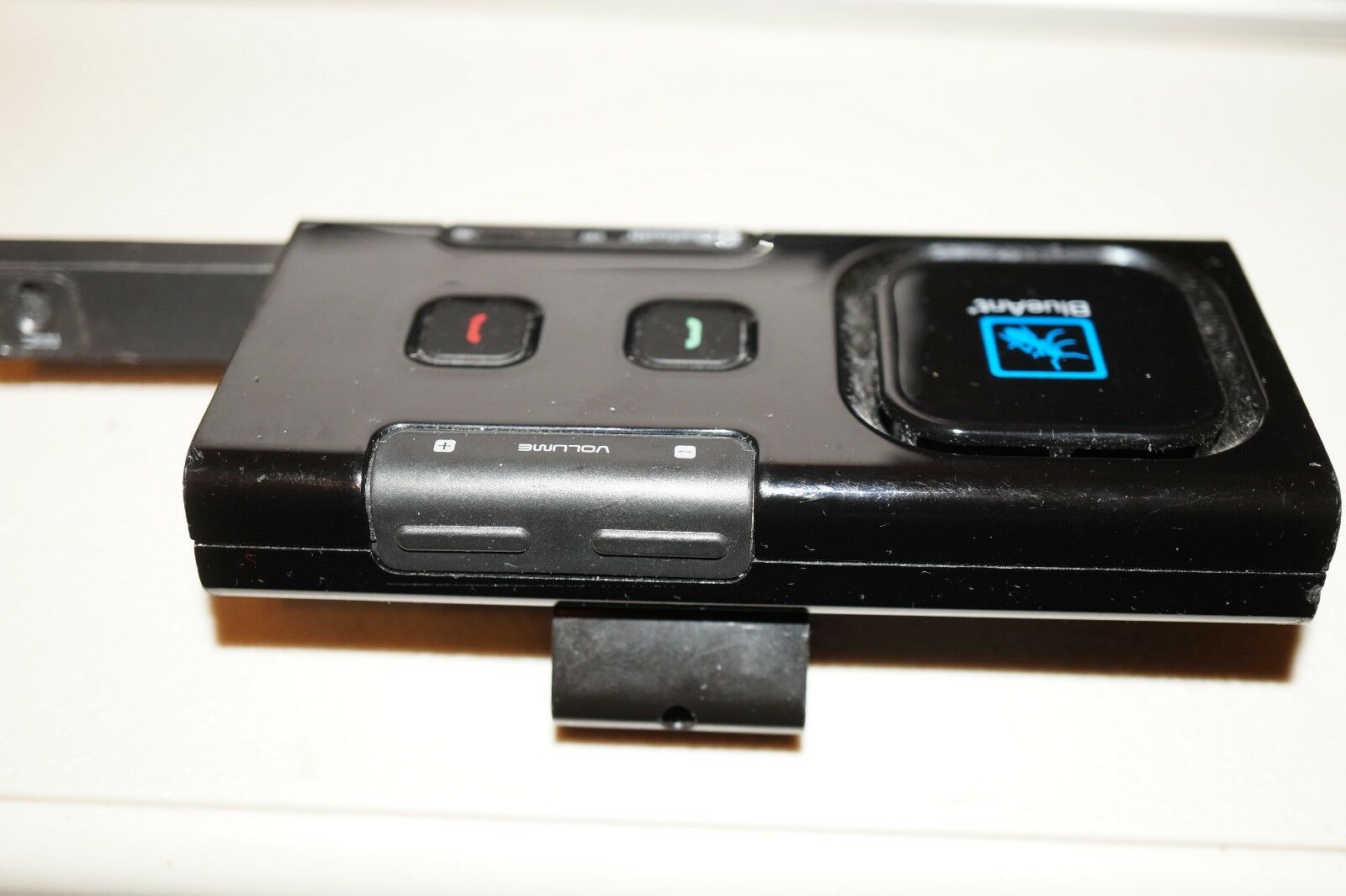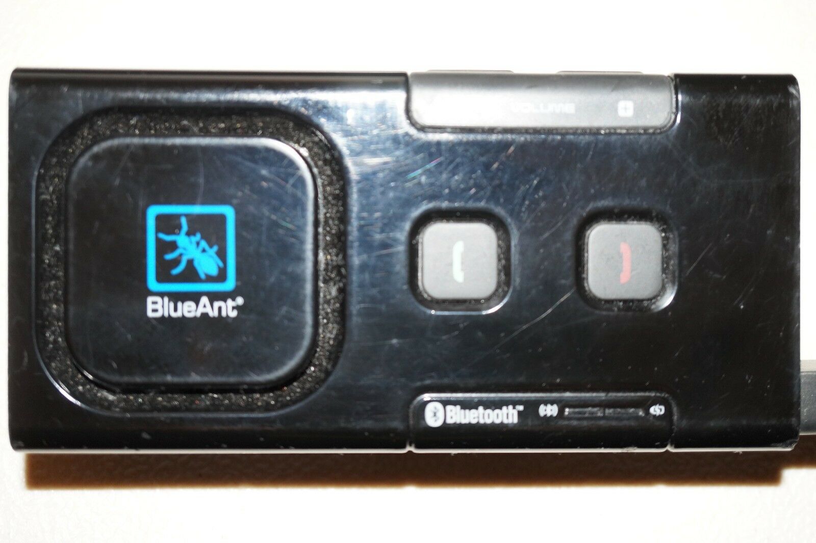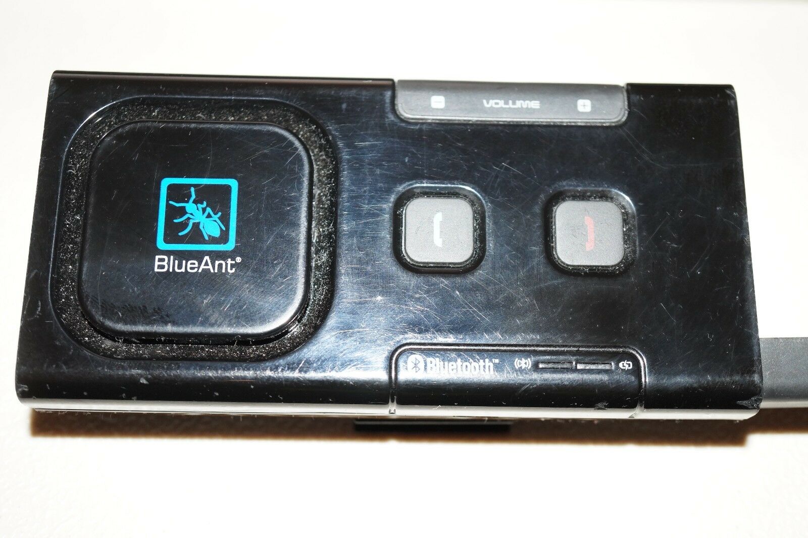 BlueAnt Supertooth Light BTSLBC3 Bluetooth SpeakerphoneSeems to work fine except that the antenna won't stay in, so it cannot be turned off without physically holding the antenna in. Would be good for parts or repair. Comes with visor clip.